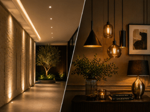 Layered Lighting – Combining ambient, task, and accent lighting helps create a balanced and flexible lighting environment.