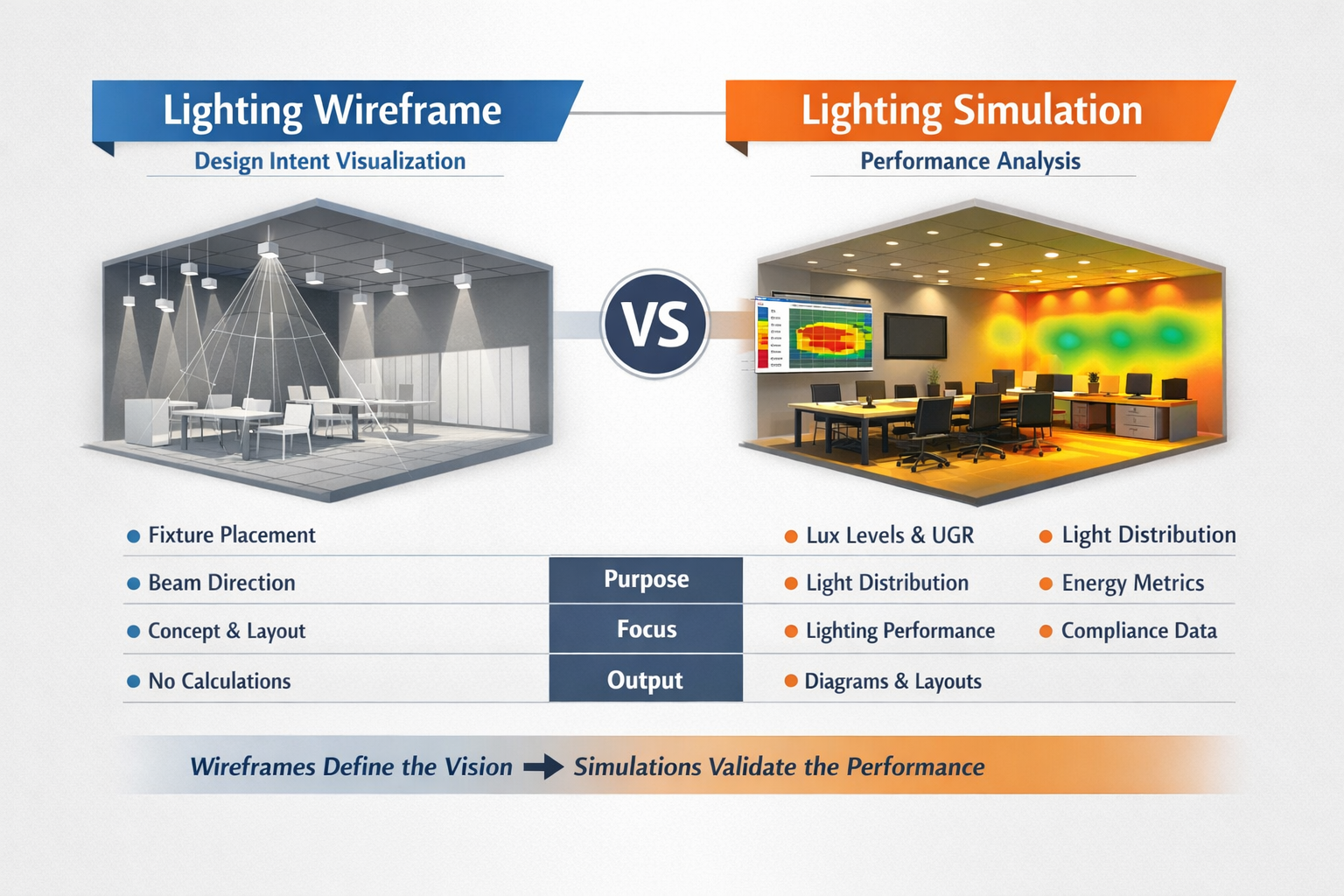 Early lighting wireframes play a critical role in reducing design revisions, preventing project delays, and improving overall coordination in architectural projects. By visualising lighting intent at the concept stage, design teams can align faster, resolve conflicts earlier, and move into execution with confidence. This proactive approach not only saves time and cost but also results in better-designed, performance-driven spaces.
